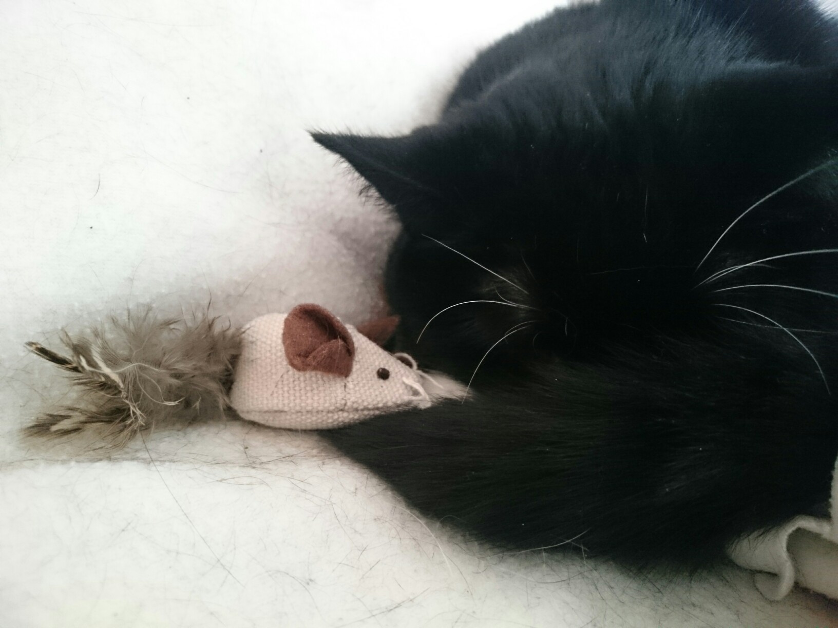 Natürlich spielt und tobt sie nicht mehr so intensiv und lange wie unsere kleinen Mädchen. Sie schläft sehr viel und oft geht es ihr krankheitsbedingt auch nicht gut. Dazu kommt leider auch, dass meine Oma nicht mehr mit ihr gespielt hat und Lady über die Zeit das katzengerechte Spielen verlernt hat.
